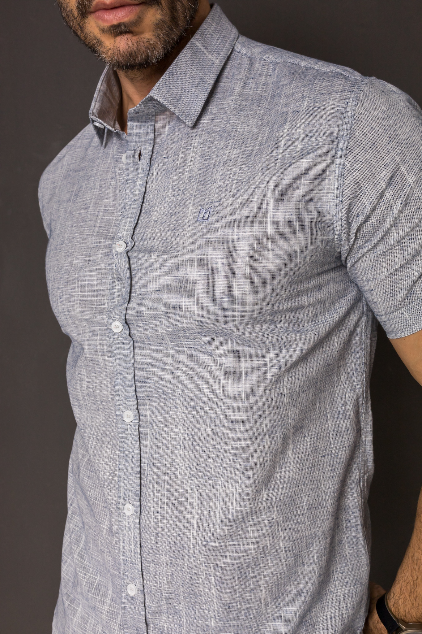 Uma camisa que veste super bem, AZUL MARINHO LINHO FLAMÊ TINTO, colarinho e acabamento Italiano. Camisa com abertura frontal e manga curta é detalhe na manga. Peça confortavel, sofisticada e elegante para estar com você em seus melhores momentos.